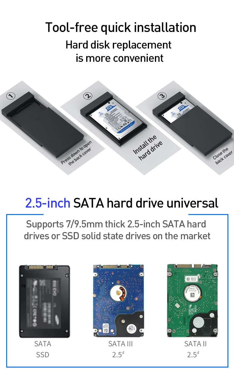 2,5-дюймовый Корпус для мобильного жесткого диска type-C USB3.0 с последовательным портом SATA, Бесплатная установка, Твердотельный механический жесткий диск