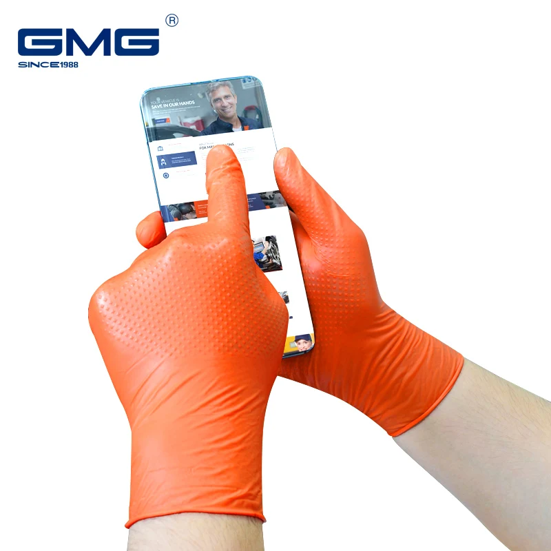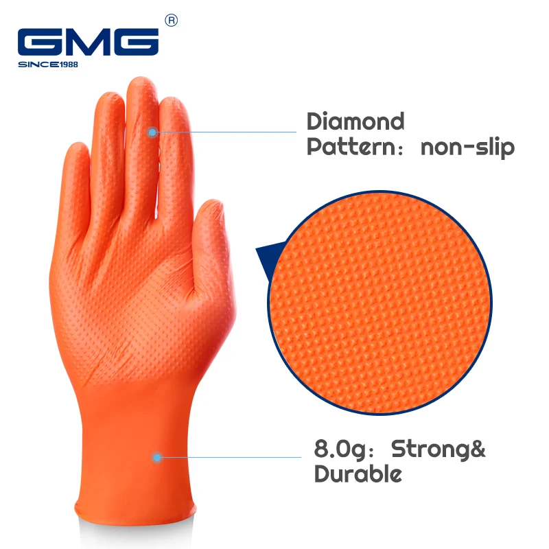 Нитриловые перчатки, виниловые 50 шт. GMG, оранжевые водонепроницаемые промышленные перчатки для кухни и сада, одноразовые рабочие синтетические нитриловые перчатки