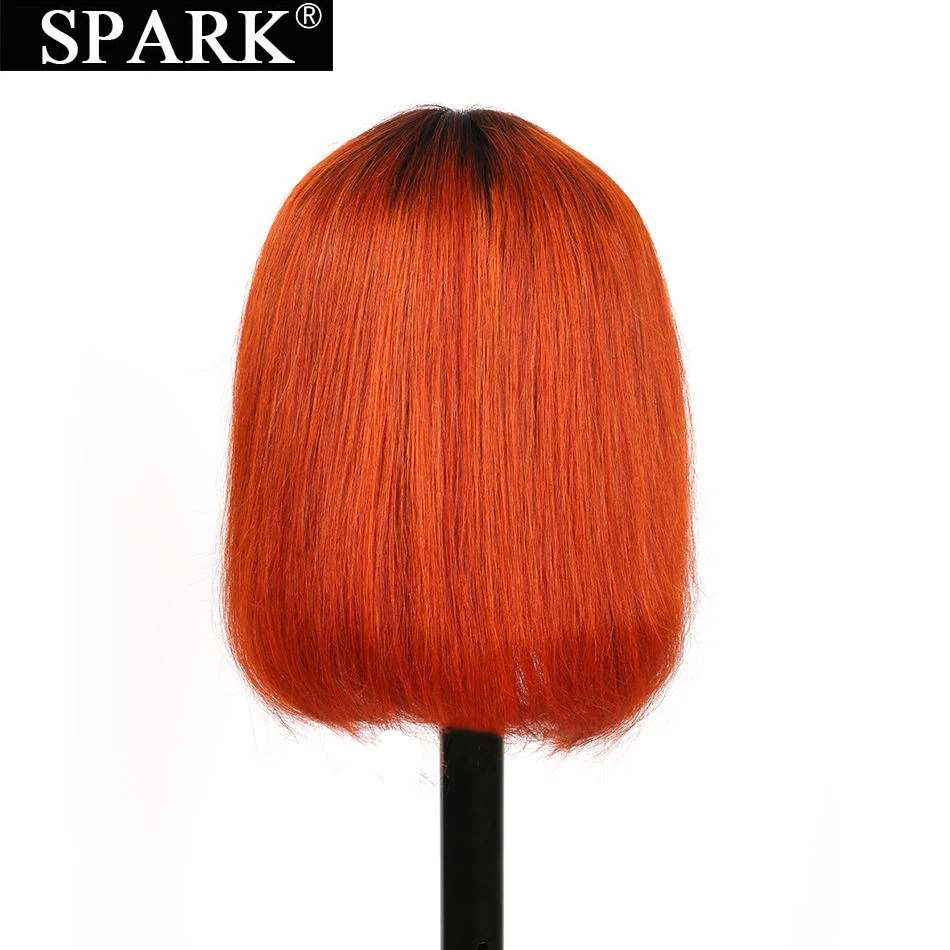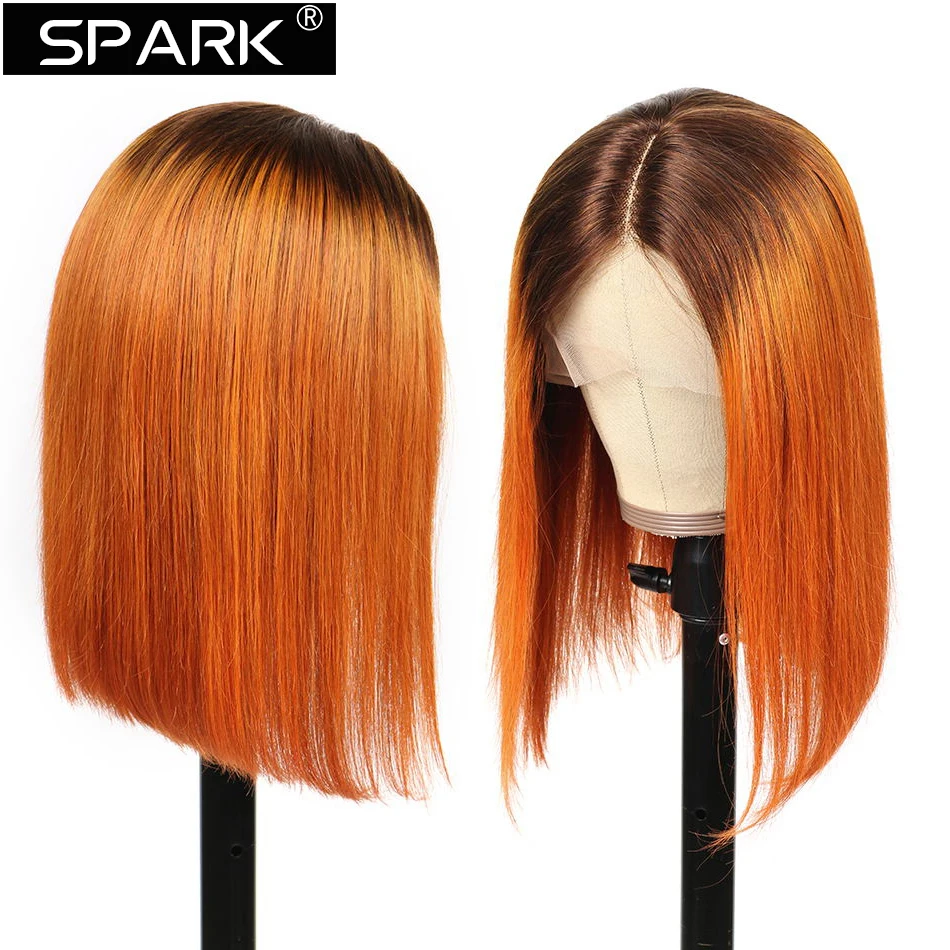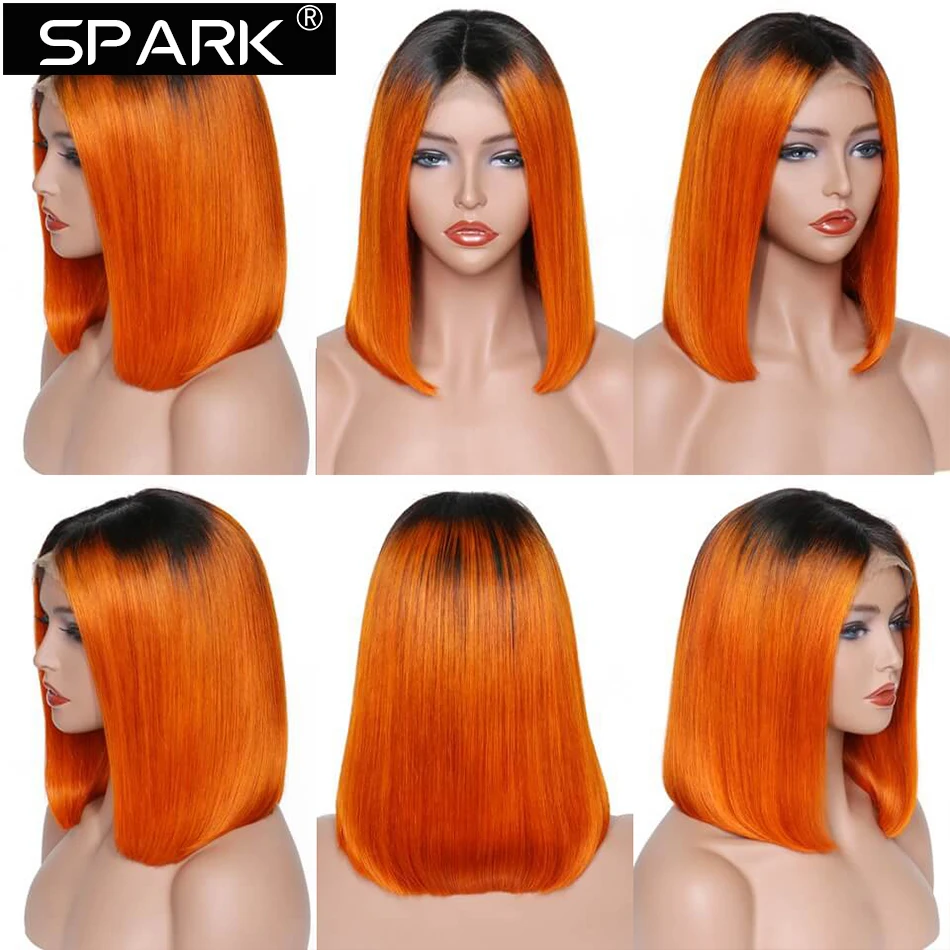 Цвет Омбре короткий Боб 1Bоранжевый человеческие волосы парик фронта шнурка прямой Бразильский Реми парик шнурка для женщин без клея закрытие шнурка парик