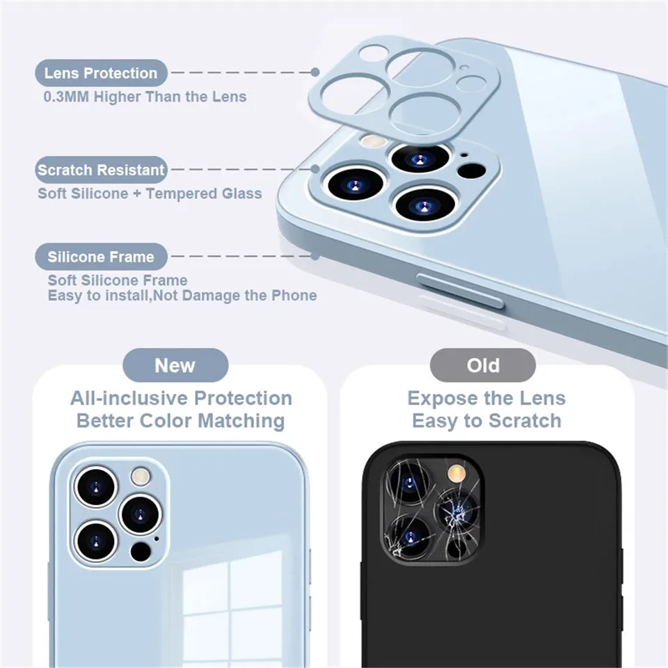Чехол из закаленного стекла с жидким силиконом для iPhone 11 12 13 ...