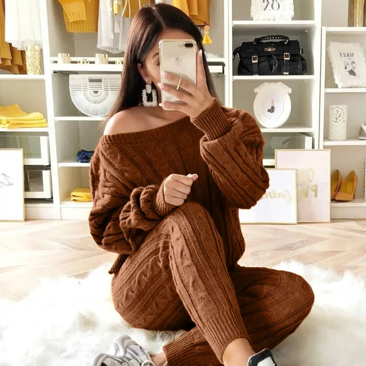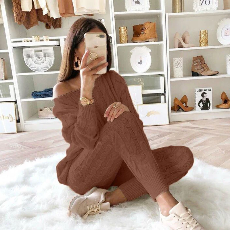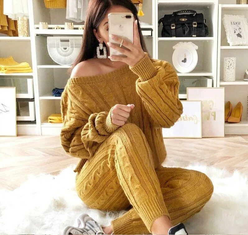 Женский комплект из двух предметов, трикотажный свитер и штаны, укороченный топ большого размера, спортивный костюм