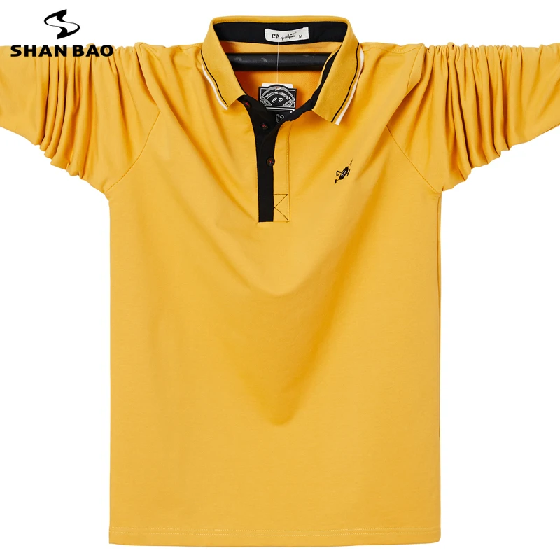Мужская Однотонная рубашка-поло с длинными рукавами и отложным воротником