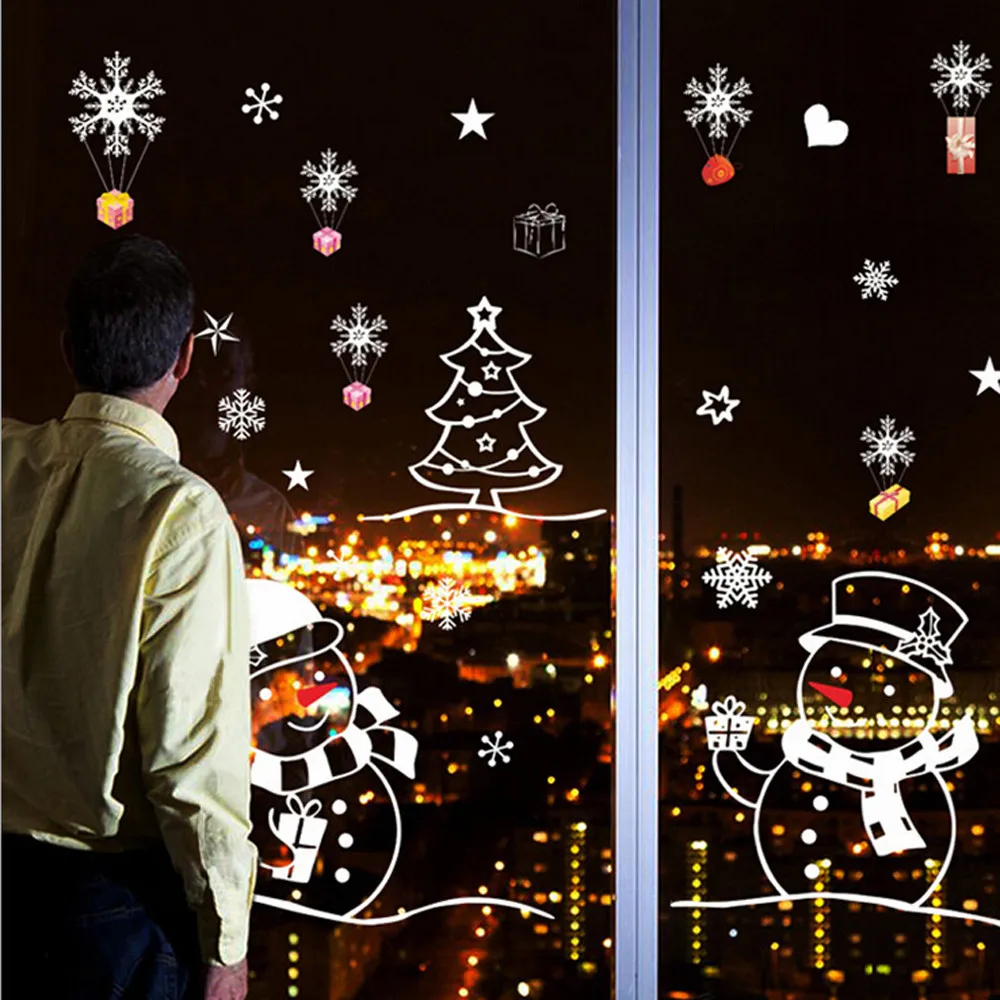 Рождественский снеговик съемные домашние виниловые наклейки на окна...