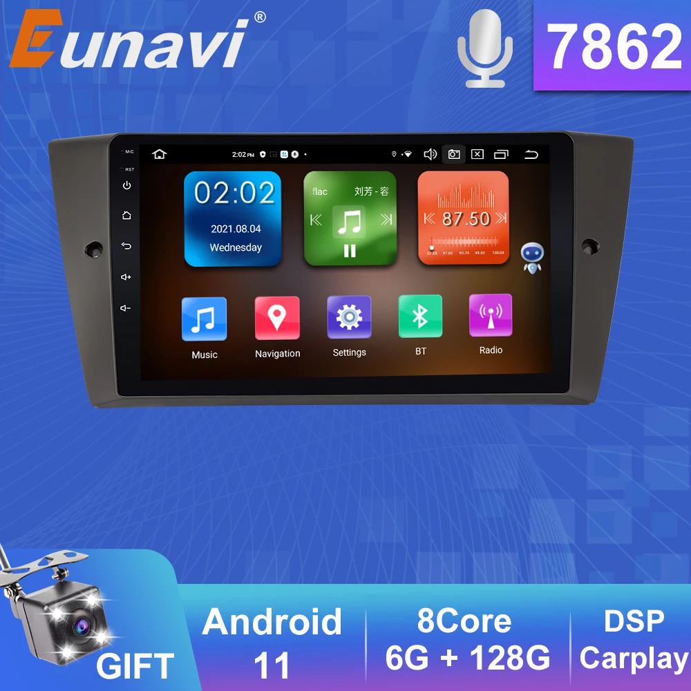 Автомагнитола Eunavi 4G Android 11, мультимедийный видеоплеер для BMW 3 серии E90 E91 E92 E93 2005-2013, головное устройство с GPS-навигацией и DVD