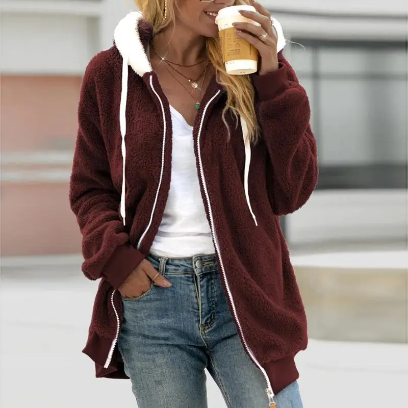 Зимнее женское пальто, плюшевая куртка на молнии, женские толстовки...