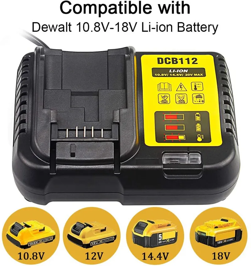 Особенности: Использование высокомолекулярного экологически чистого материала, прочного и стабильного, анти-сломанного и может обеспечить длительный срок службы. Встроенная защита 8 типов, защита от перегрева, защита от короткого замыкания и батареи, защита от перегрузки по току, сверхурочная защита, защита от перезаряда, защита от утечки и защита от перегрузки по давлению. Защита от зарядки, долгая зарядка и обнаружение поврежденных батарей. Это новейшее быстрое зарядное устройство для ваших электроинструментов. Зарядный ток никель-металл-из 3A, диапазон мощности 12 V-20V. Когда аккумулятор будет заполнен, будет уведомление, чтобы напомнить вам. Мини-размер и легкий, не будет занимать слишком много места. Совместимые модели: DCB180/DCB181/DCB181-XJ/DCB200/DCB201/DCB201-2 XR Li-Ion 18 в: DCD740/DCD740B/DCD780/DCD780B/DCD780C2/DCD780L2/DCD785C2/DCD785L2/DCD980L2/DCD985B/DCD985L2/dc5l2/DCF880C1-JP DCF895L2/DCG412/DCG412B/DCG412L2/DCS331B/DCS331L1/DCS331L2/DCS331N/DCS380B/DCS380L1/DCS381/DCS391B/DCS391L1/DCS393/DCB120/DCB121/DCD710/DCD710S2/DCF610/DCF610S2/DCF813S2/DCF815/DCF815N/DCF815S2/DCK210S2/DCK211S2/DCL040/DCL510/DCS310/DCS310S1/DCT410S1/DCT411S1/DCT414S1 Dewalt DCD700/Dewalt DCD710/Dewalt DCD710S2/Dewalt DCF610/Dewalt DCF610S2/Dewalt DCF805/Dewalt DCF813/Dewalt DCF813S2/Dewalt DCF815 dewalt DCR006/Dewalt DCS310/Dewalt DCS310S1/Dewalt DCT410S1/Dewalt DCT411S1/Dewalt DCT412/Dewalt DCT414/Dewalt DCT416/Dewalt DCT418
