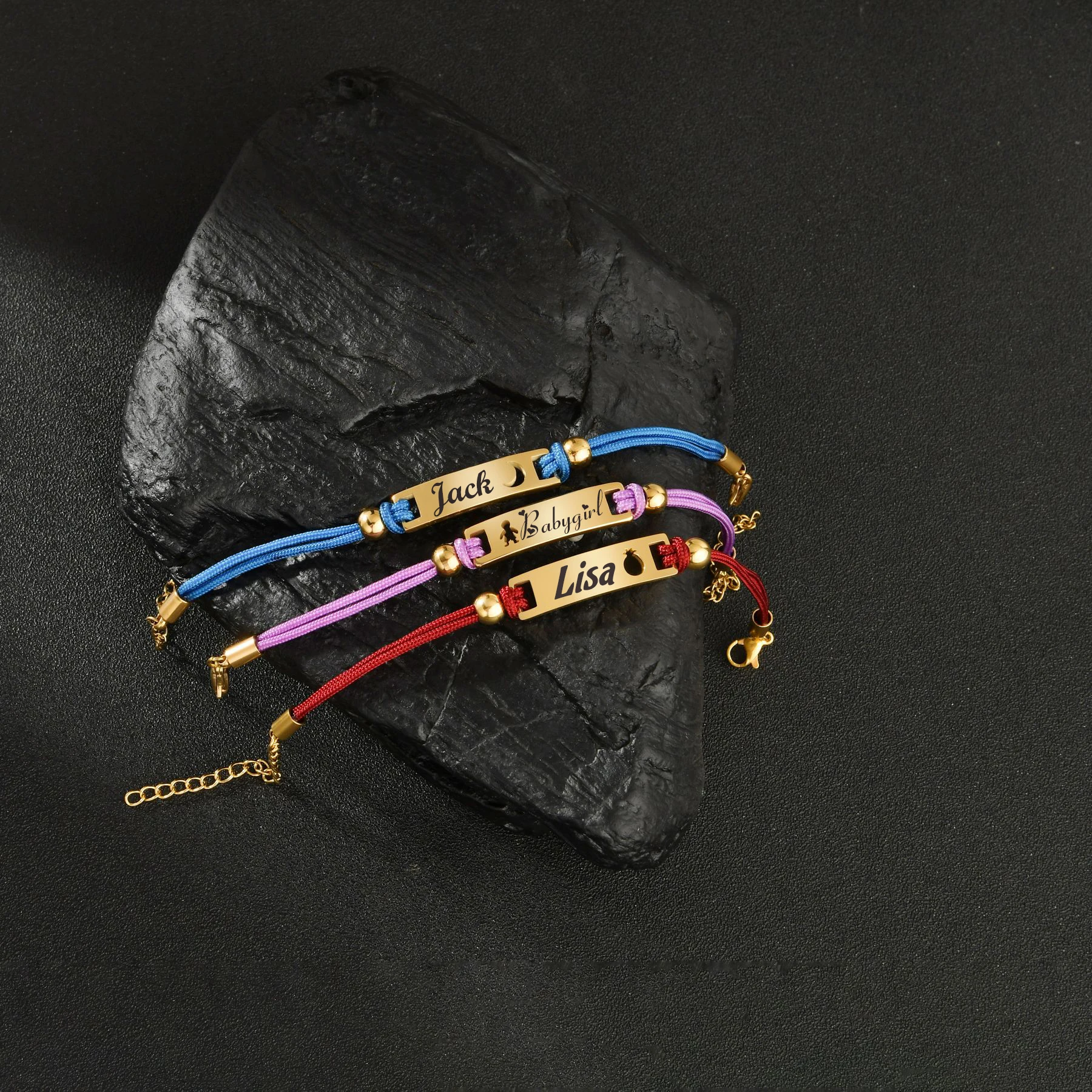 Sifisrri пользовательское имя ребенка дата бар табличка красная веревка браслет для девочки нержавеющая сталь для мальчиков Регулируемая звеньевая цепь ювелирные изделия подарок Pulsera Прямая поставка и оптовая продажа