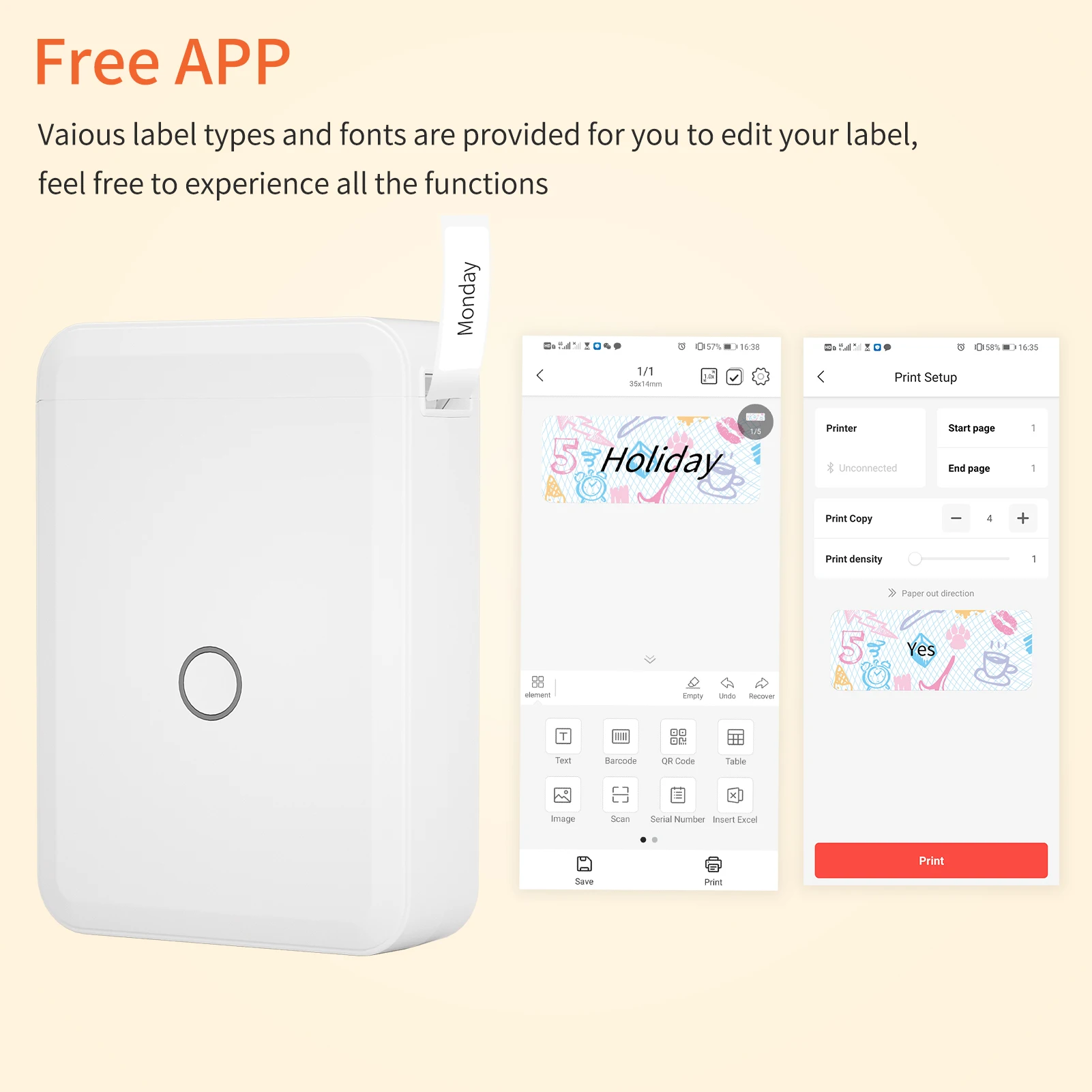 Качество печати нормальное и быстрое. Принтер восстанавливает этикетки. Мобильное приложение хорошо работает и предлагает много встроенных функций для всех видов потребностей, но сначала возникли проблемы с поиском принтера. Доставка была очень быстрой; 10 дней.