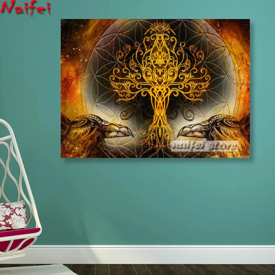 Алмазная живопись, новые стразы, картины, алмазная вышивка, Ворон и дерево жизни, поделки, настенная фотография, полный комплект