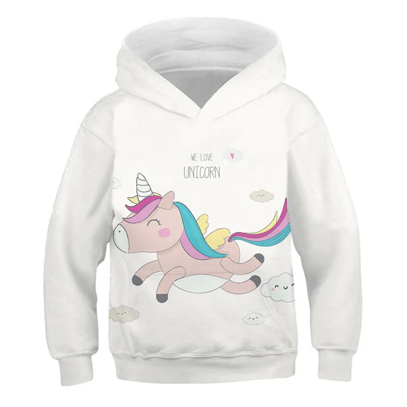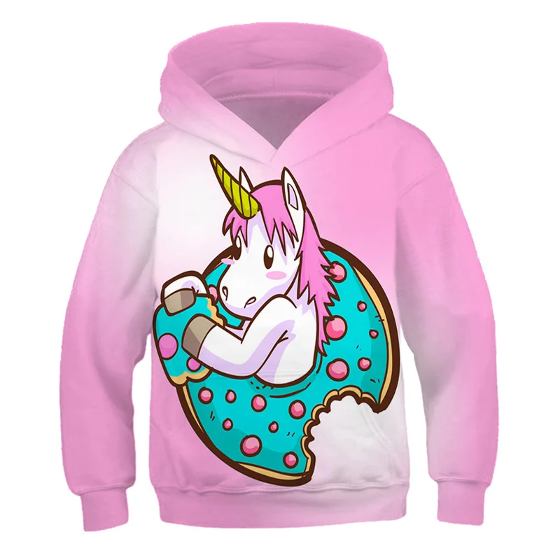 Толстовка с капюшоном для девочек, милый мультяшный единорог, Детск...