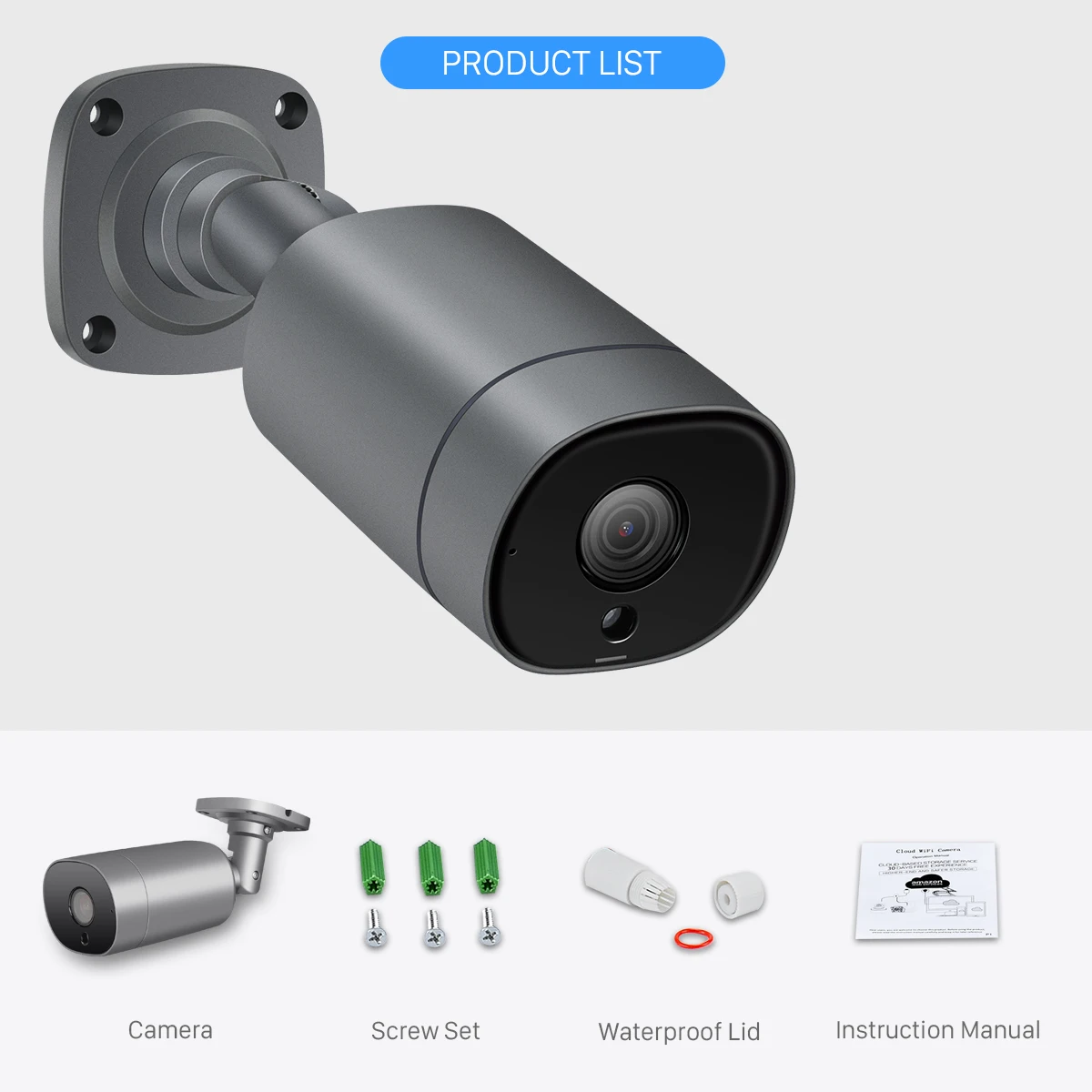1 * ip-камера1 * Руководство пользователя на английском языке1 * Водонепроницаемый комплект для дождя1 * Винт