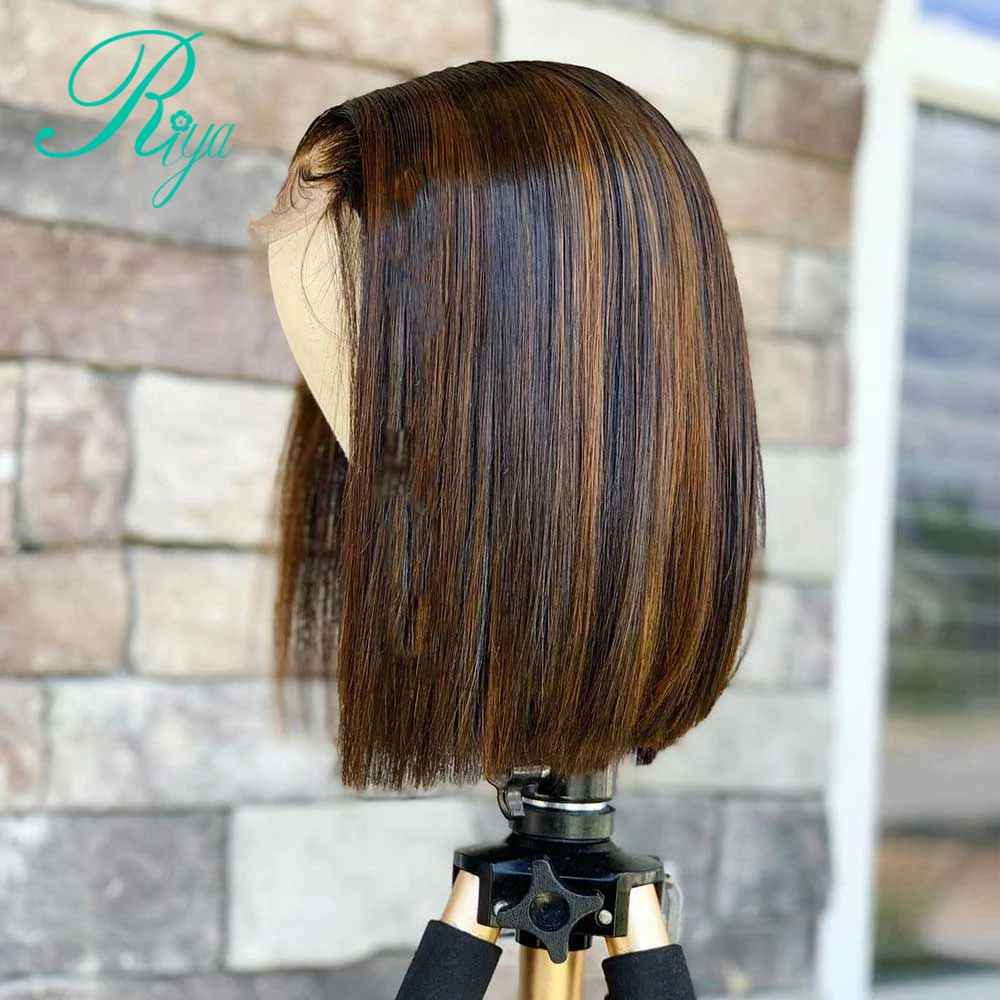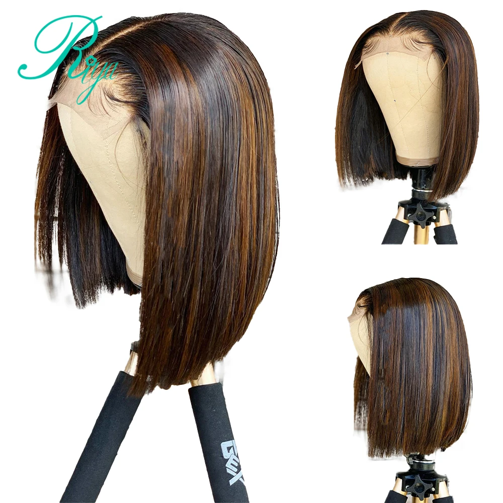 Невидимый парик из человеческих волос с коротким напылением фальшивого Боба, прямые волосы с застежкой спереди 4X 4, хайлайтер, Омбре, медовый, светлый цвет, Реми, бразильский