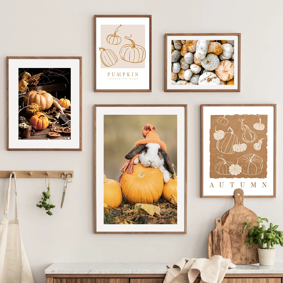 Настенная Картина на холсте деревья листья Тыква кролик деревня осень скандинавские плакаты и принты настенные картины для гостиной Декор