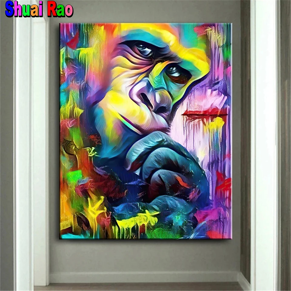 Алмазная живопись 5D сделай сам с изображением животных, граффити, обезьяны, полноразмернаяКруглая Мозаика, шимпанзе, алмазная вышивка бисером, домашний декор