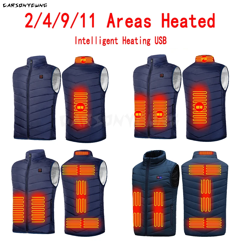 Мужской уличный жилет с инфракрасным подогревом и USB, мужская и женская зимняя электрическая Термоодежда, жилет для нового 11 мест, жилет с подогревом