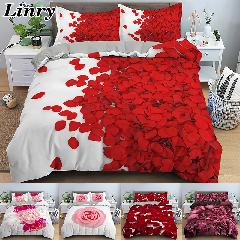 Романтический Комплект постельного белья с красными розовыми цветам...