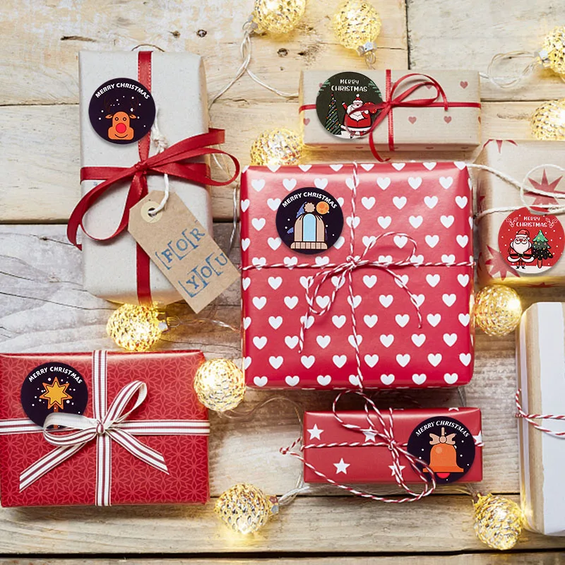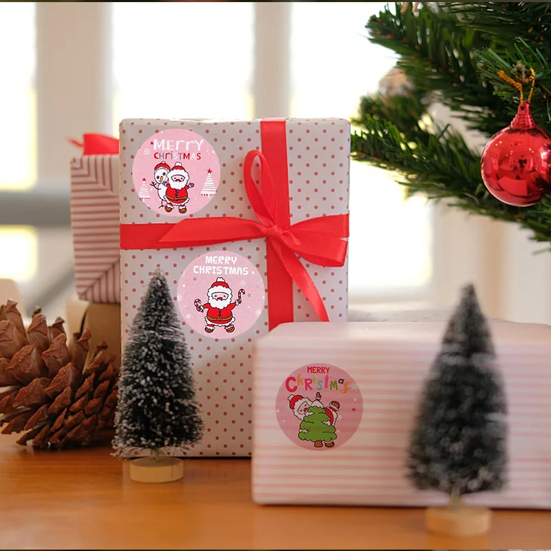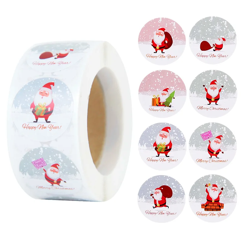 500 шт.рулон, Новогодние декоративные наклейки Санта-Клаус, Снеговик