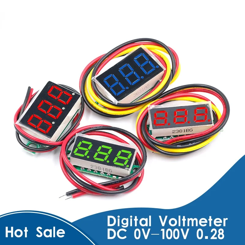 Цифровой вольтметр, постоянный ток 0-100 в, 0,28 дюйма, светодиодный измеритель напряжения, монитор, тестер для панели автомобиля, 12 В, 24 В, красный, зеленый, синий, желтый