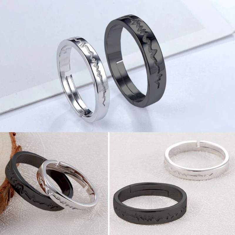 Кольца для пары с электрокардиограммой 2 шт., медное кольцо с сердц...