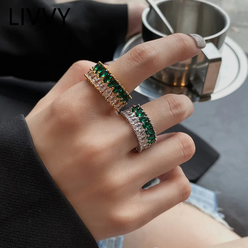 Модные Двухслойные кольца LIVVY серебристого цвета с синим кристаллом циркона для женщин, обручальное кольцо, подарок, модные ювелирные изделия