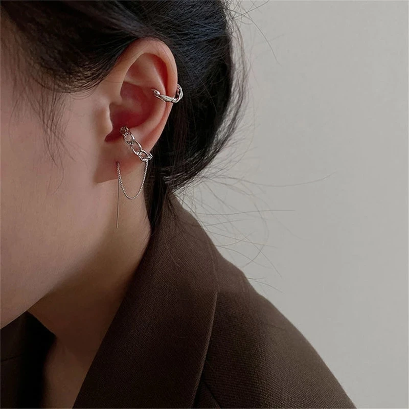 Зажим для ушей, 1 шт., длинная цепочка, крест, серьги для женщин, ю...