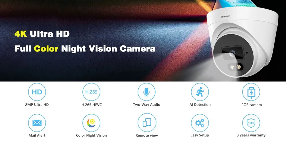 AHCVBIVN H.265 8MP 4K IP камера PoE наружная купольная камера безопасности двухсторонняя аудио AI умная сигнализация обнаружения движения P2P