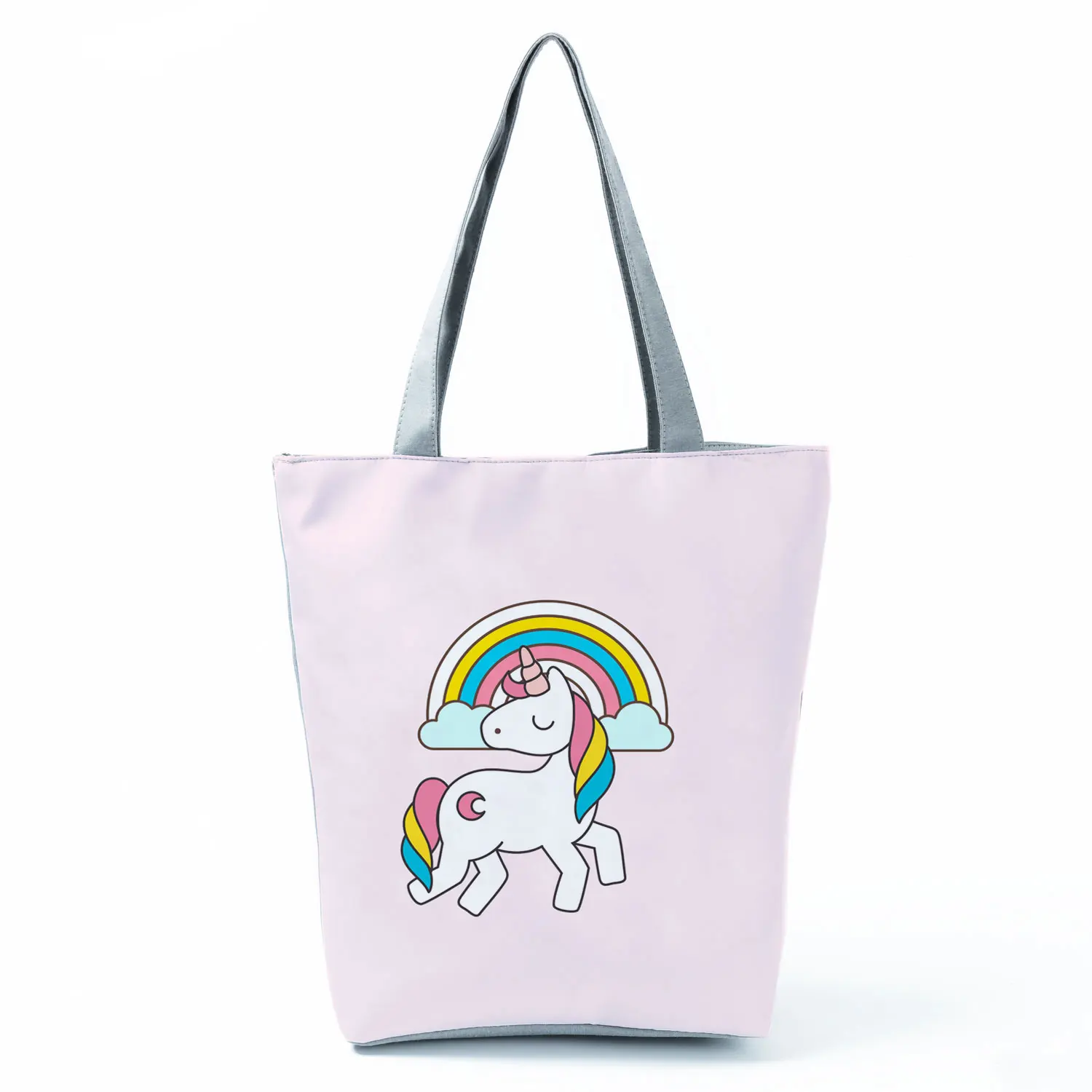 Цветная сумка с принтом единорога для женщин, Офисная Складная школьная сумка для девочек, экологичные модные сумки, прочные портативные сумки для магазинов