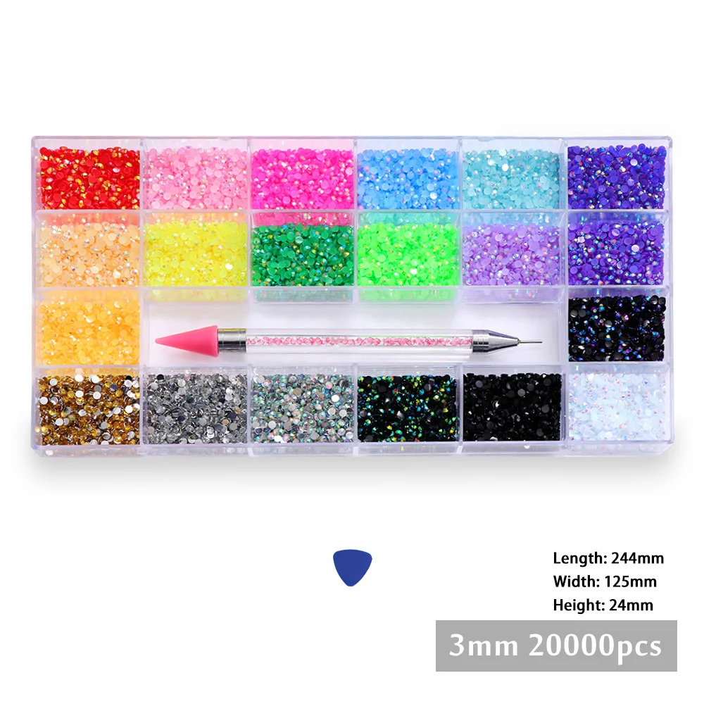 20000 шт.корт. 3 мм AB железная Смола Стразы красочные круглые блестящие драгоценные камни с плоской задней стороной аксессуары для ногтей DIY 3D украшения для дизайна ногтей