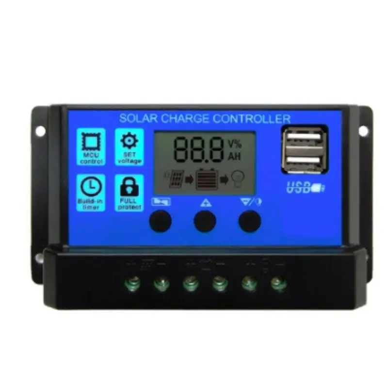 Автоматический контроллер заряда солнечных батарей, 10 А 20 А 30 А, ШИМ, 12 В, 24 В, USB 5 В, ЖК-дисплей, PV регулятор