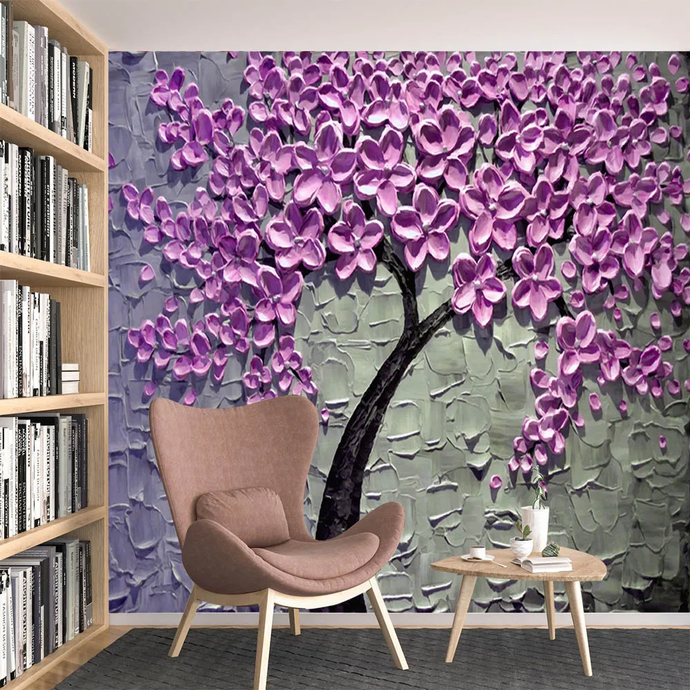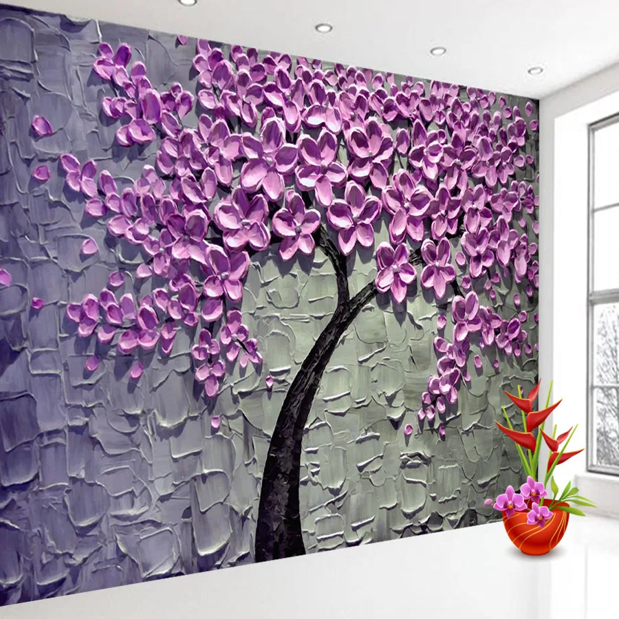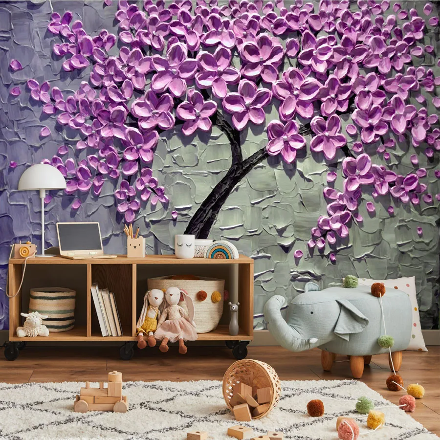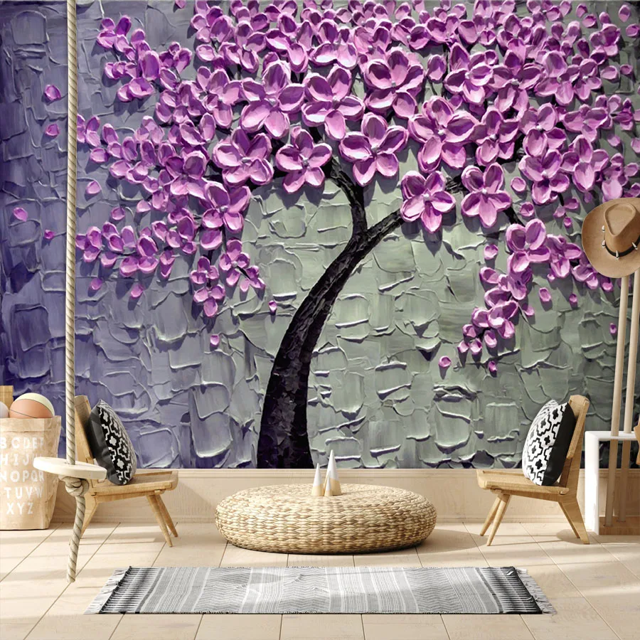 Настенная 3d Бумага с фиолетовым деревом, для гостиной, для очистки...
