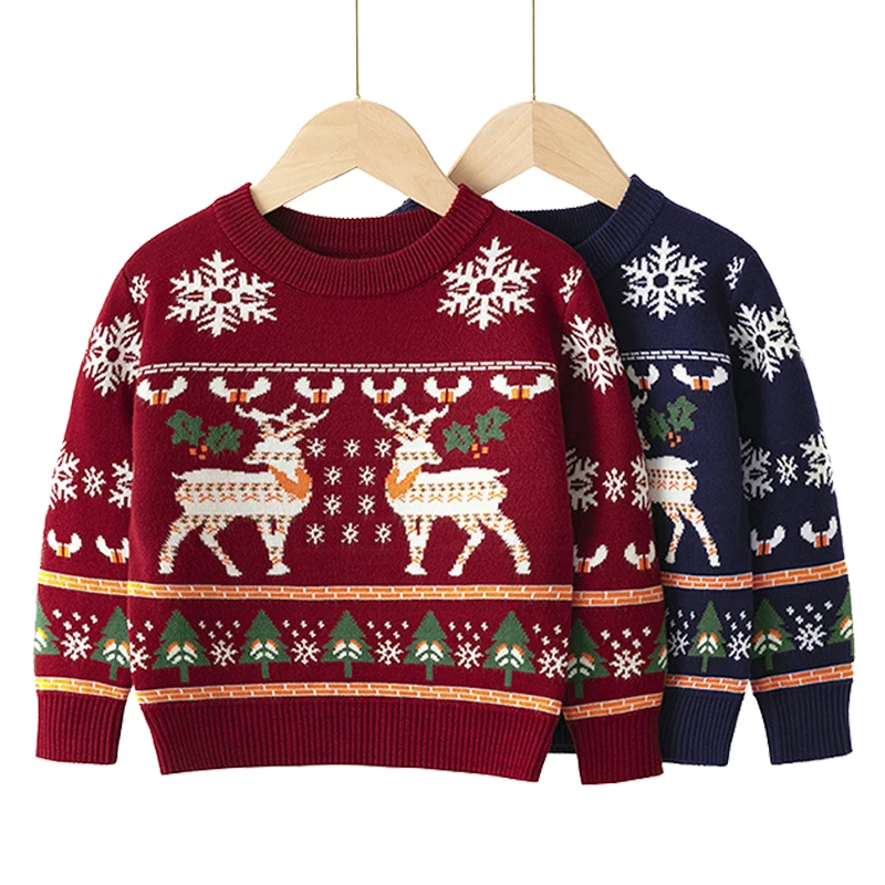 Осенне-зимние свитера для мальчиков и девочек, Детский свитер, одежда для маленьких мальчиков, вязаные теплые рождественские Топы с длинным рукавом и принтом лося, детская одежда
