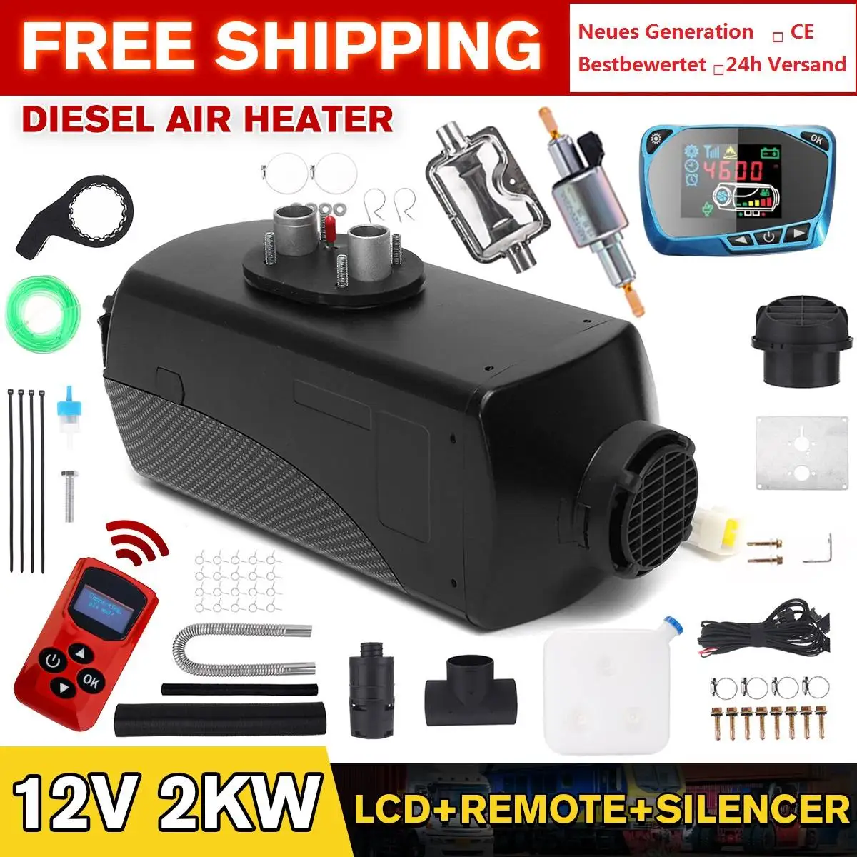 Автомобильный дизельный воздушный обогреватель, стояночный, 12 В 2 кВт, ЖК-дисплей, пульт ДУ, переключатель монитора, обогреватель с глушителем для грузовиков, автобусов, прицепов