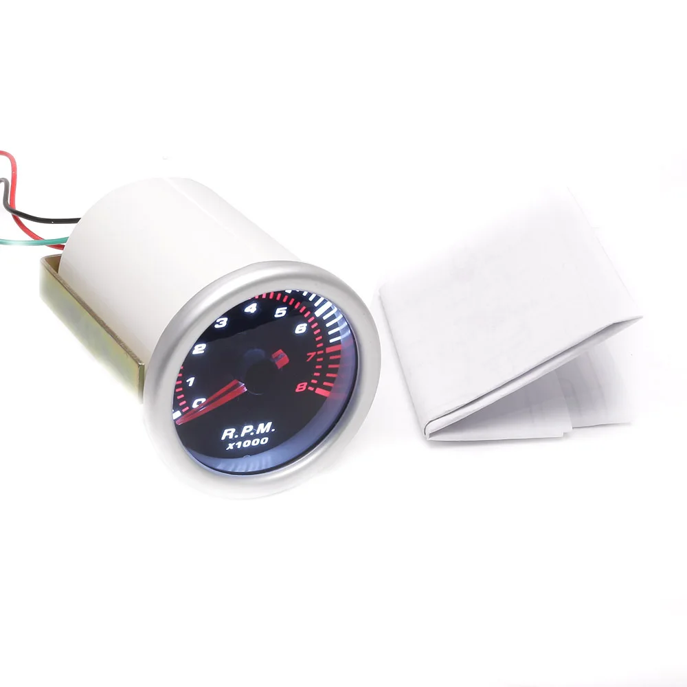 Автомобильная флейта 0 8000 обмин, измеритель 2 ", 52 мм, универсальный автомобильный двигатель, Белый светодиодный измеритель, указатель обмин, 12 В, бензин