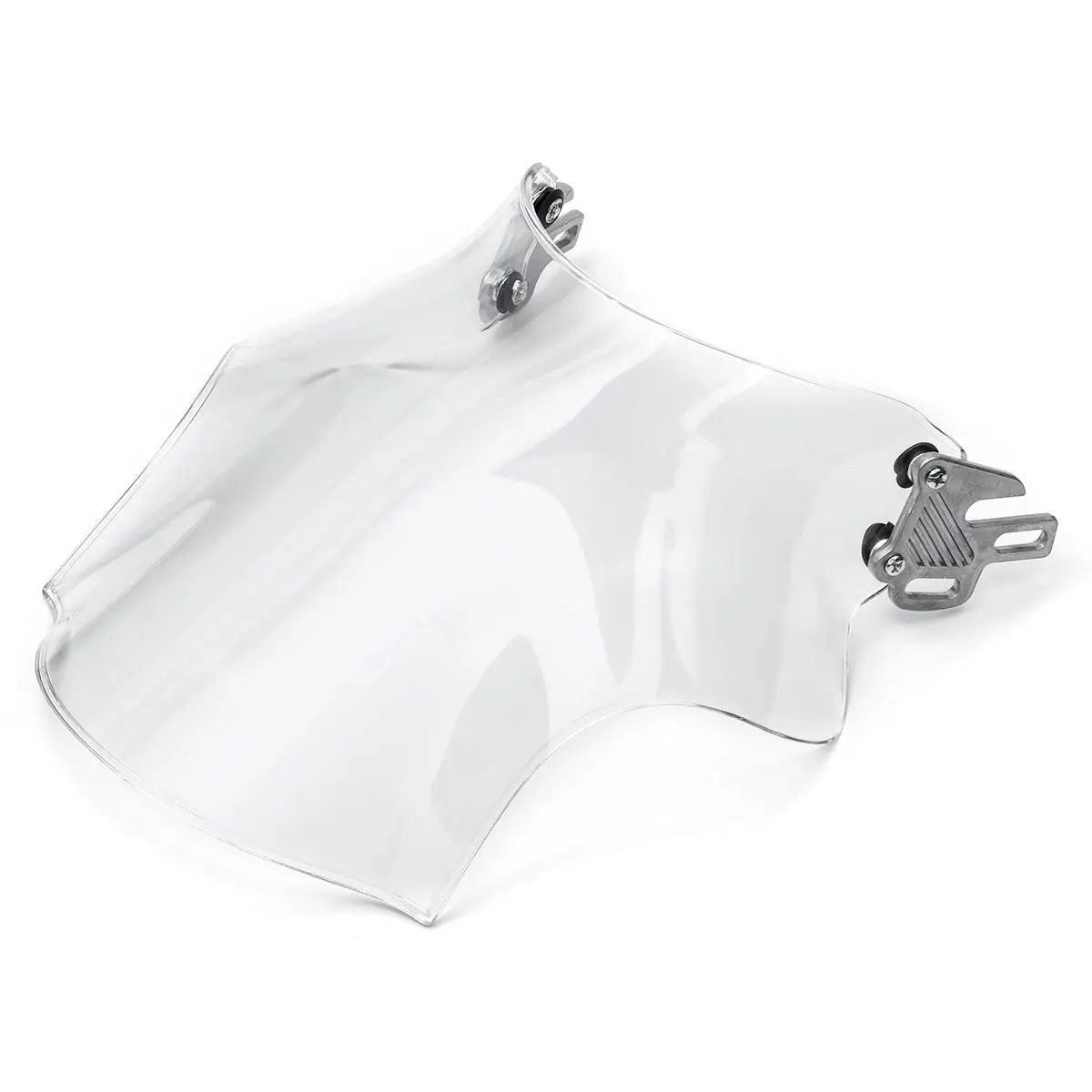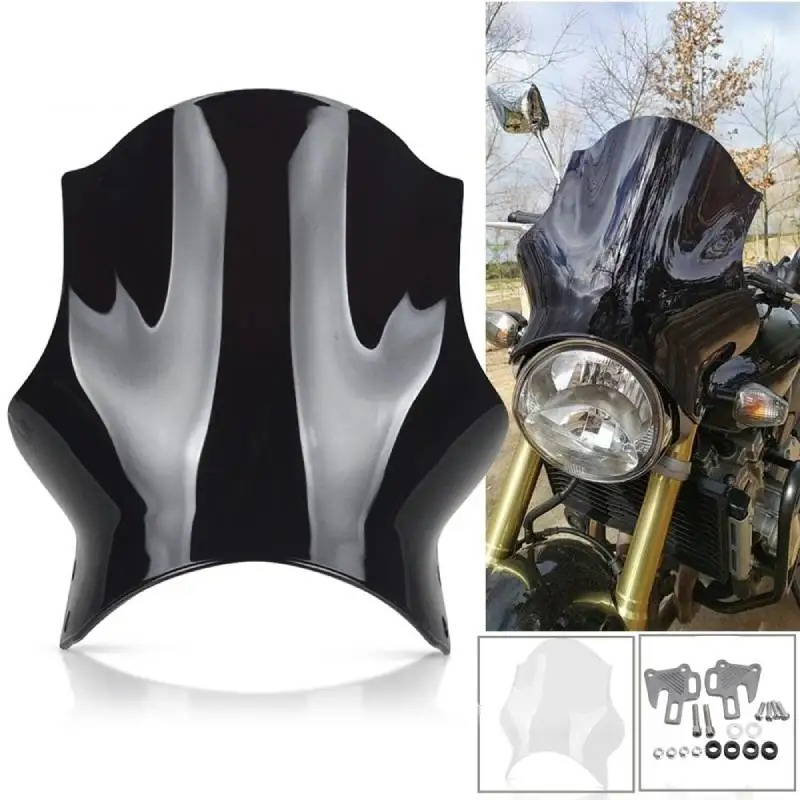 Особенности: -Лобовое стекло может защитить любителей мотоциклов от ветра, выброшенных камней, мусора и жуков. -Ветровое стекло будет отвлекать больше ветра для более комфортной езды, и это делает более расслабляющей и безопасной езду. -Удерживает водителей в тепле в холодную погоду. -Он имеет твердое оборудование, поэтому они стабильны.