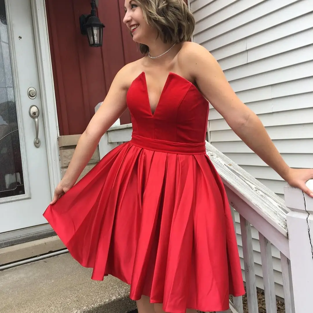 Новое Стильное платье для встречи выпускников, атласное ТРАПЕЦИЕВИДНОЕ ПЛАТЬЕ С Рюшами, короткое коктейльное платье А-силуэта для вечеривечерние