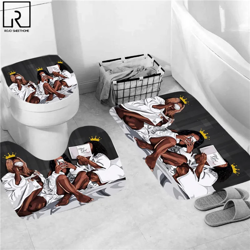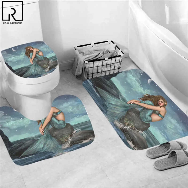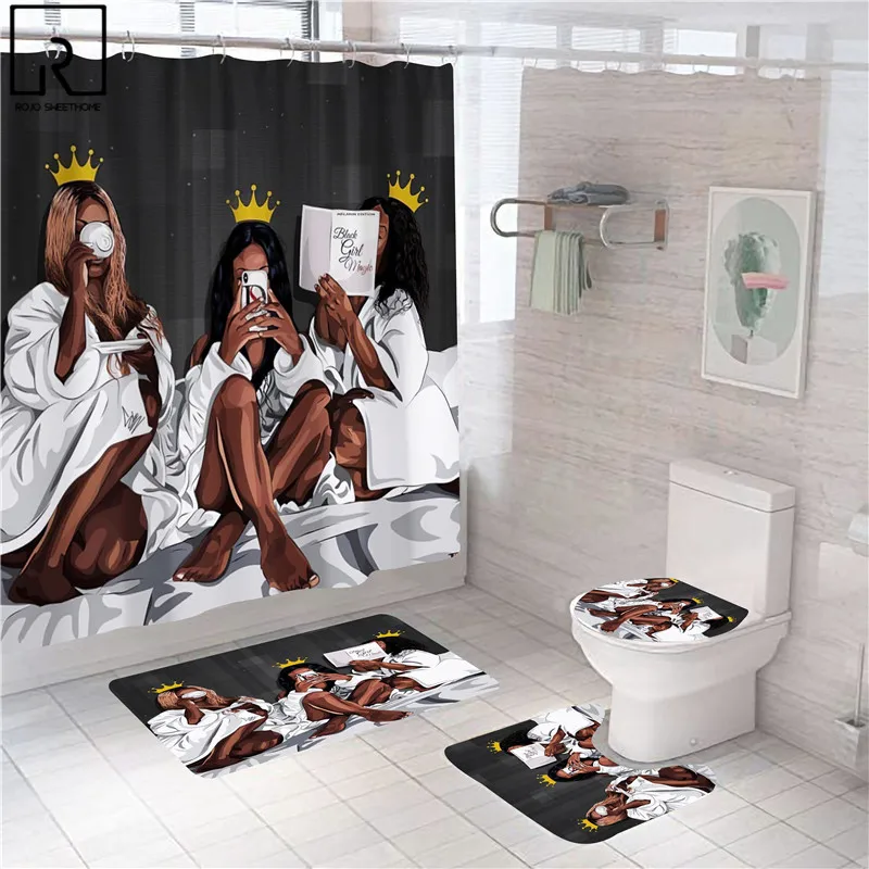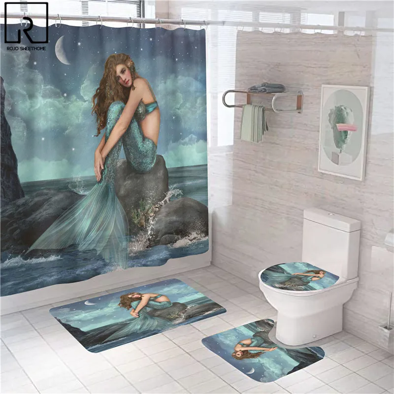 Винтажная русалка, черная женская занавеска для душа с принтом, ткань, водонепроницаемая, для ванной, экран, коврик для ванной, набор туалетов, украшения дома