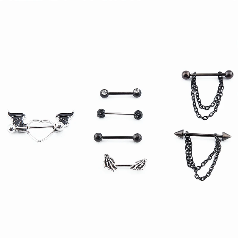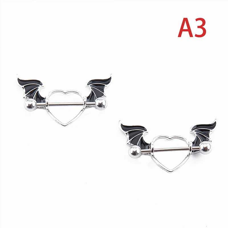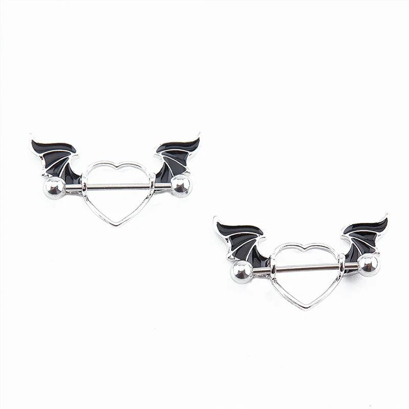 Пирсинг для сосков из нержавеющей стали с черными крыльями ангела, 14 г, 2 шт.