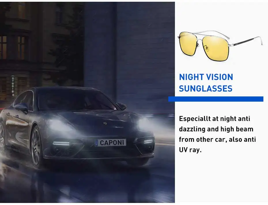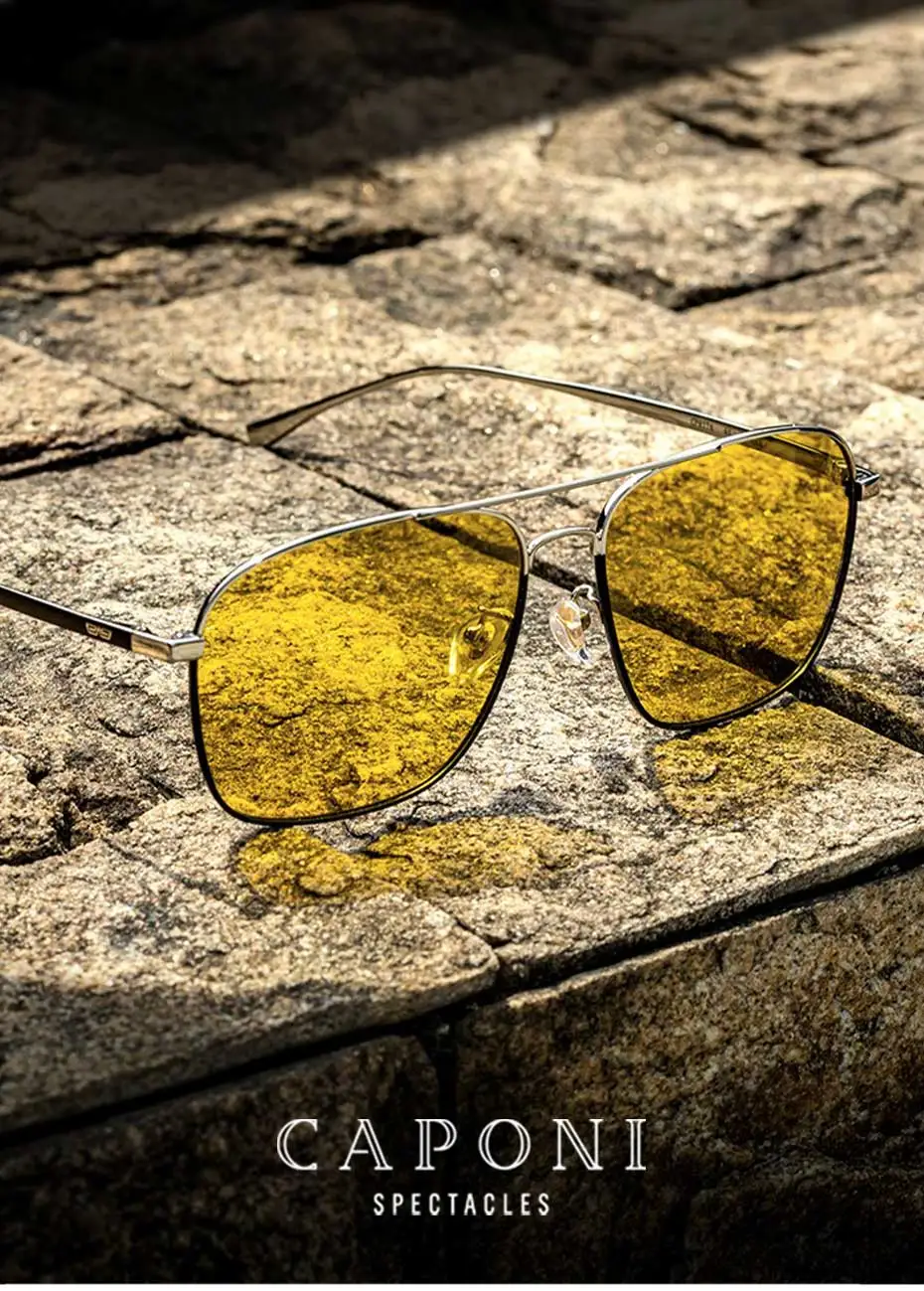 Мужские солнцезащитные очки для вождения CAPONI, темно-коричневые поляризационные Квадратные Солнцезащитные очки с защитой UV400, BSYS8174