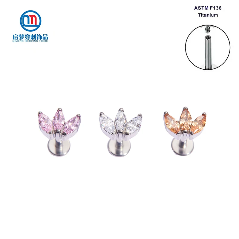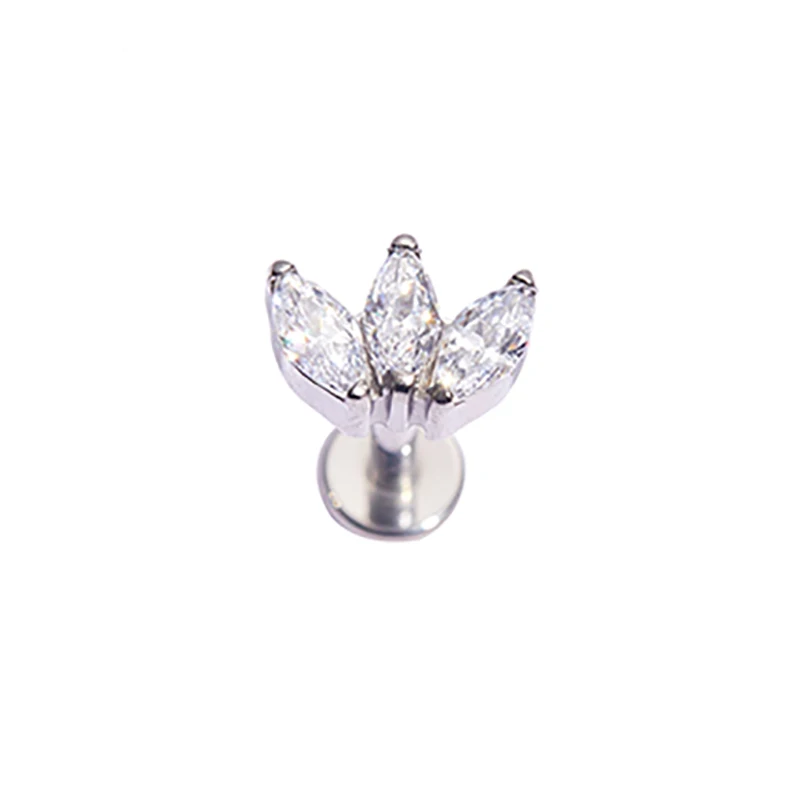 Изделие из титана ASTM F136, украшение для пирсинга тела в виде клевера с внутренней резьбой