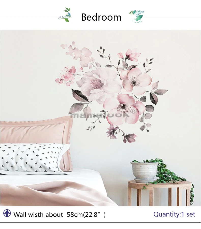 Новые розовые цветочные настенные наклейки, украшение для спальни, ...
