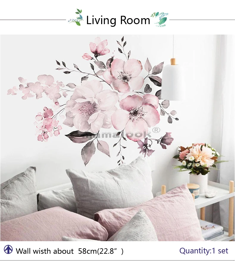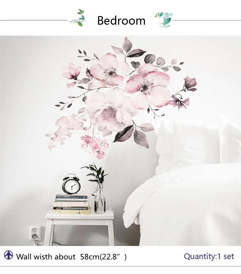 Акварель розовые цветы наклейки на стену спальня гостиная украшения...