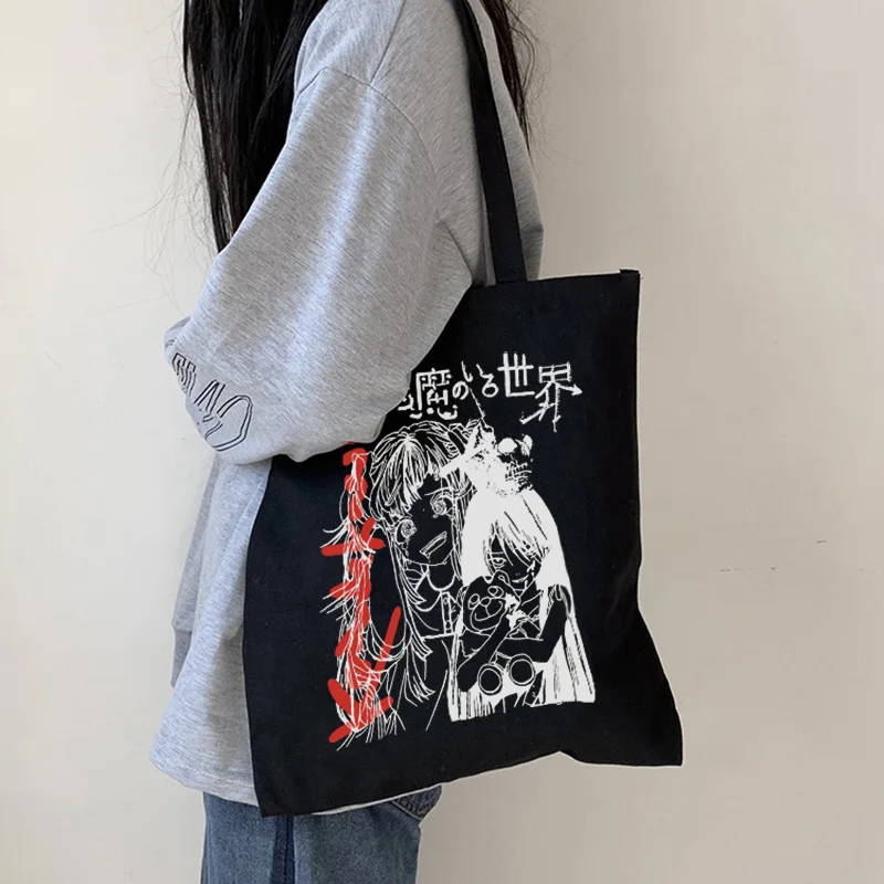 Японская женская сумка через плечо в стиле аниме, холщовая Готическая Повседневная темная вместительная винтажная Женская сумочка в стиле Харадзюку, мультяшный мешок y2k