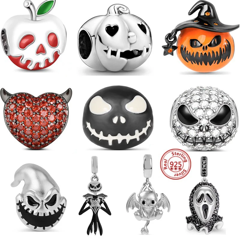 Новинка 925 серебро Хэллоуин Тыква череп милые забавные бусины Шарм...