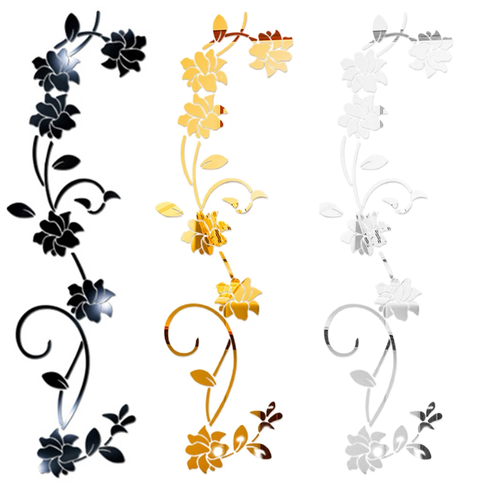 Наклейки на стену с розами, цветок, Виноградная лоза, 3D, зеркальный эффект, наклейка, золото, серебристый, черный, 100 х30 см, акриловый шкаф