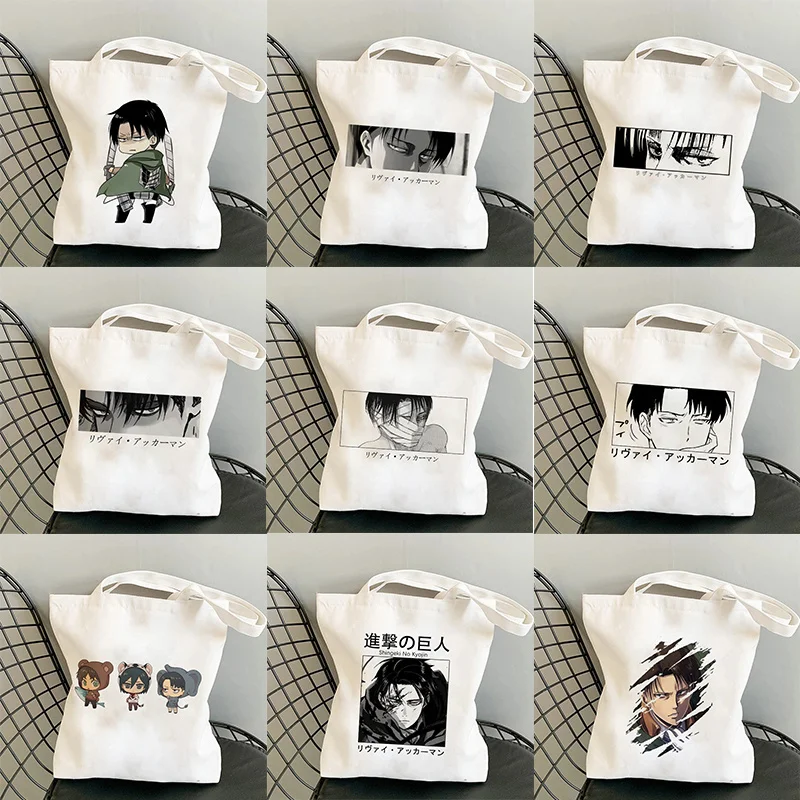 Японская Сумка-тоут с рисунком из аниме Леви атака на Титанов, сумки для покупок, сумка для шоппинга shгеоги No Kyojin, тканевая многоразовая сумка на плечо