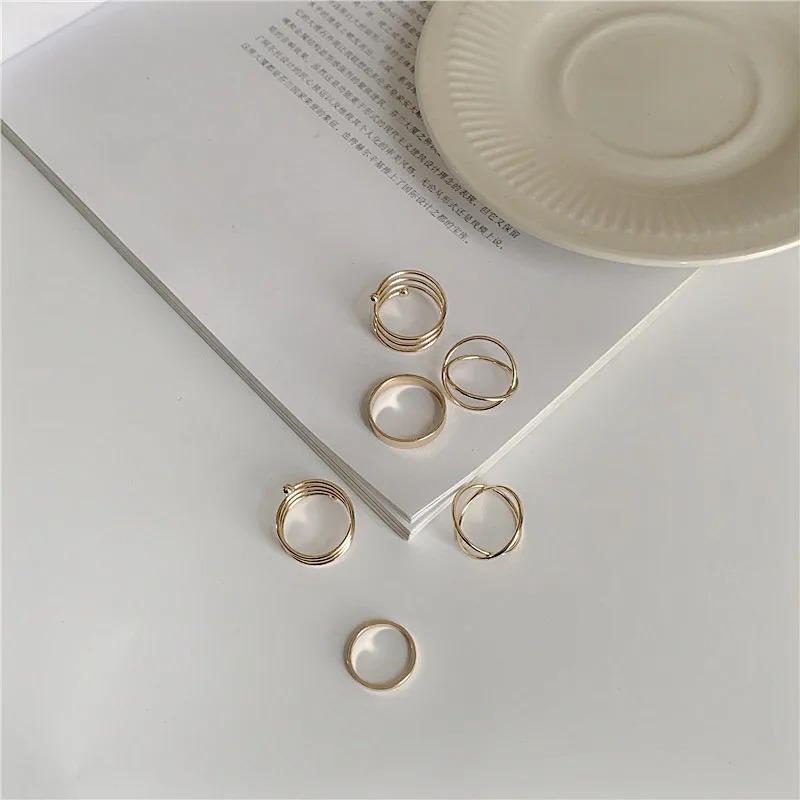 Женские кольца в стиле панк, 6 шт.компл., минималистичные гладкие золотистыечерные геометрические металлические кольца, украшения для вечевечерние