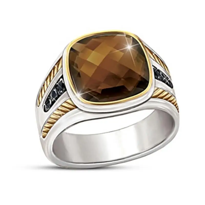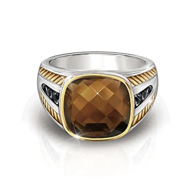 Мужские кольца, винтажные кольца из дымчатого кварца, ювелирные изделия, хэллоуинские кольца, массивное кольцо