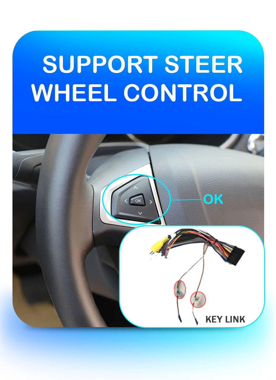 Функция управления поворотным колесомВсе радиоприемники в нашем магазине поддерживают функцию управления поворотным колесом. Кнопки рулевого колеса вашего автомобиля могут управлять нашим радио после установки радио. (однако страница рулевого колеса обычно пуста. Если вы хотите увидеть кнопки aoo на странице рулевого колеса, вы можете просто подключить ключевую линию к линии рулевого колеса автомобиля, тогда вы увидите все кнопки рулевого колеса на странице) если кнопки поворотного колеса не работают, пожалуйста, не волнуйтесь и не спорьте, пожалуйста, оставьте нам сообщение, Мы поможем вам сделать работу на 100%.