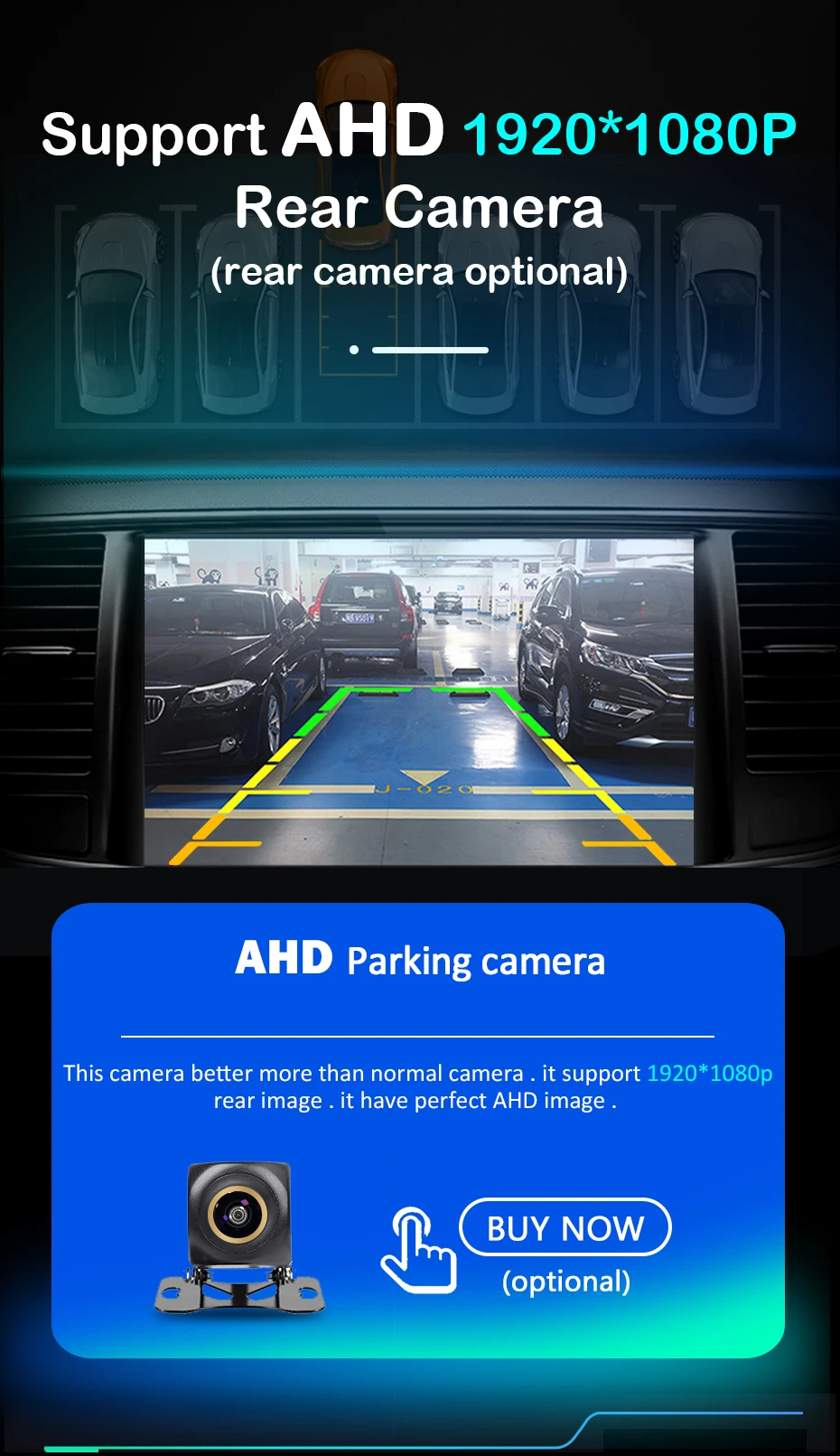 Радио подходит для задней камеры AHD 1920*1080Suport AHD 1920*1080P камера, эта камера является дополнительной функцией, если вам это нужно, вы можете нажать ниже фото и купить его вместе с радио.
