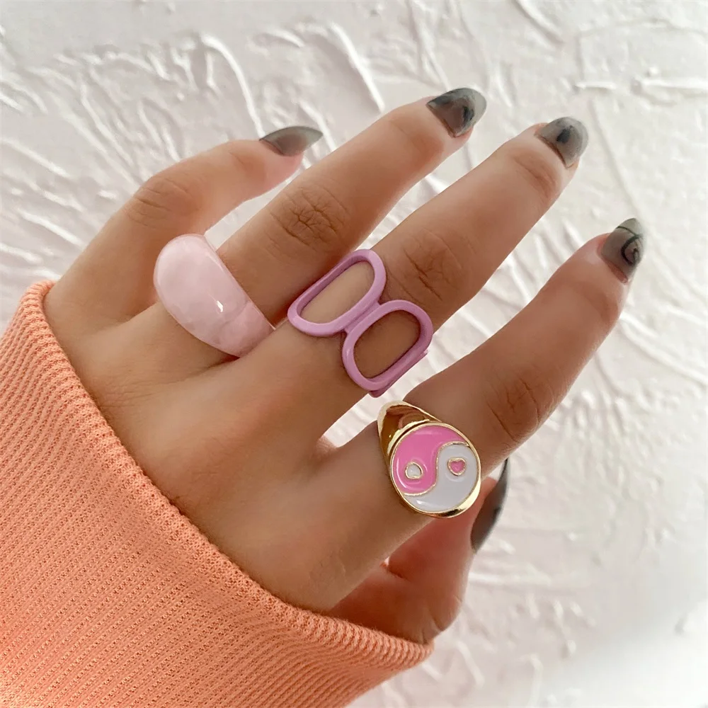 Набор Колец женских FNIO Y2K, в богемном стиле, розового и зеленого...